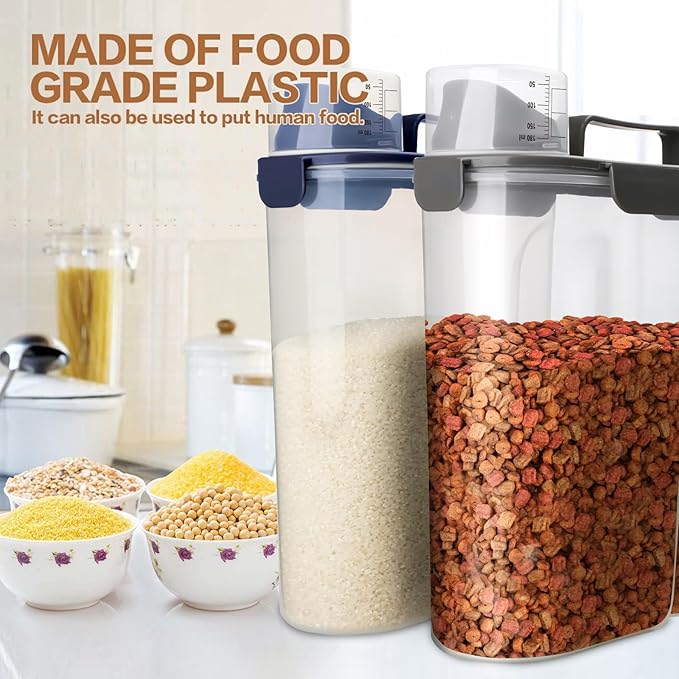 - Airtight BPA Free Food Container- Cat food bins have airtight silicone gasket and 4 snap lock latches to keep out moisture, humidity, and pests. BPA free durable clear plastic makes food can be checked at a glance