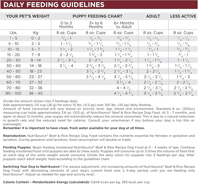 - CONTAINS: (1) 4LB Bag of NutriSource Beef and Rice Dry Dog Food