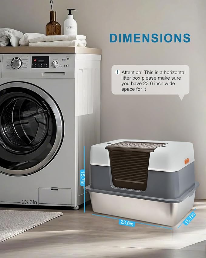 - 【Long Side Entrance Design】Featuring a spacious 23.5-inch side entrance, our cat litter box is perfect for multi-cat households and those with large cats (under 16 lbs). It offers a comfortable entry for your feline friends while preventing litter from spilling out. Before purchasing, please review the dimensions (23.5" L x 15.7" W) to ensure it fits your space.