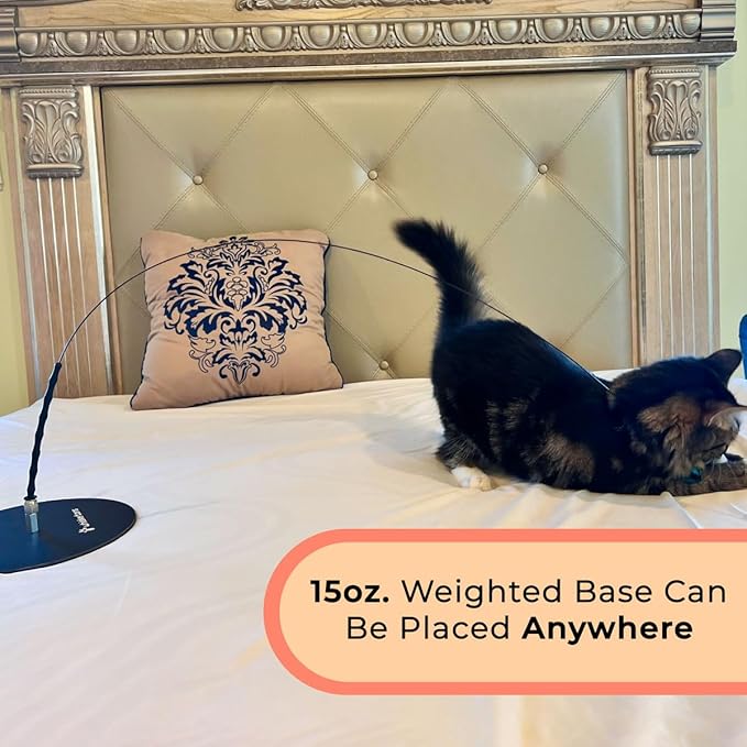 - DURABLE & ADAPTABLE: The interactive bird cat toy includes 2 highly flexible rods, a strong suction cup that can be attached horizontally or vertically to any smooth, clean surface, and a heavy-duty weighted base for carpets & furniture. The best part is that it requires no interaction from you, and your cat can play whenever they want.