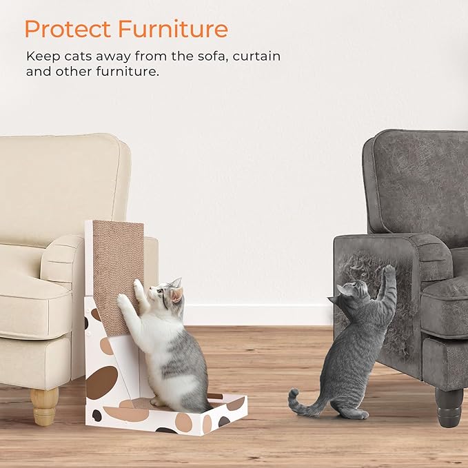 - [Protect Your Furniture] Redirect indoor cat's scratching behavior to a designated area by positioning this vertical cardboard cat scratcher next to a sofa or along a wall, which helps sharpen their claws and protect couch and walls from cat claws