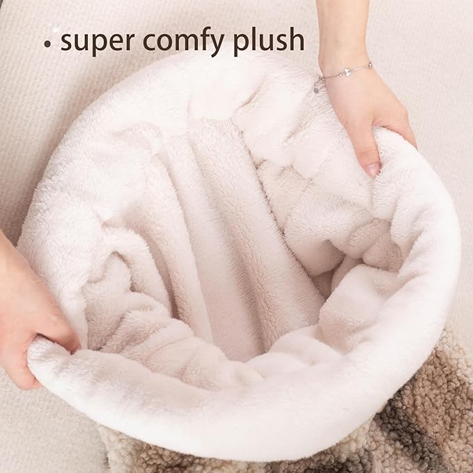- DOUBLE LAYER LAMB WOOL STYLE PLUSH MATERIAL--Warming Plush soft lamb wool tent bed for Small Cat Dog Pet Beds ,It Offers your pet a private and cozy place.