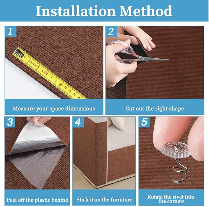 - 【Cut Your Own Diy Designs】:Cat scratch mat is designed to be easily cut to replace cat scratching board and cat scratching post, and it is also convenient to stick it on furniture and other items for cats to climb and play. You can freely cut it into any shape according to the actual size required, and use it for cat racks, wooden or wooden cat trees, cat towers, sofas or other furniture and other surface carpet substitutes