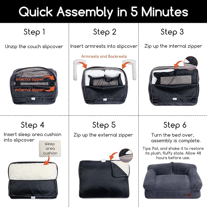 - Assemble Tips - The Hollypet cat bed will arrive as a vacuum-packed bed in a box, please carefully unpack the cat sofa couch, then pat and rub the compressed areas to make sure the filling is completely fluffy and wait 48 hours before using the pet bed