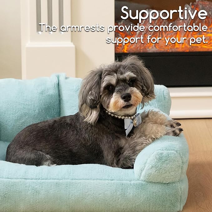 Hollypet Fluffy Plush Pet Cat Couch Sofa Soft Calming Pet Dog Sofa Beds for Medium Small Cats and Dogs, Mint Green