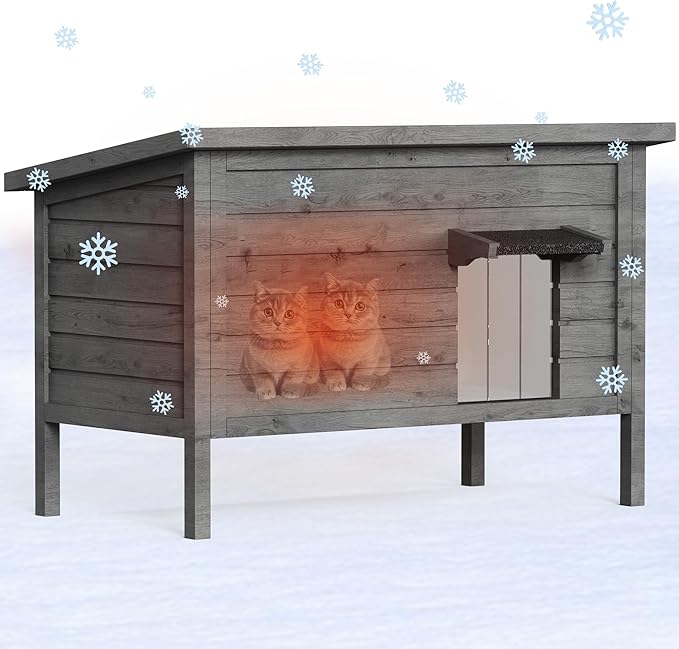 Cat House Outdoor Feral Cat Shelter Fully Insulated Outside Feral Cat Enclosure Wooden for Multiple Cats Possum Stray Condos Barn Cat Weatherproof Cathouse 34.4" L x 21.7" W x 27.2" H