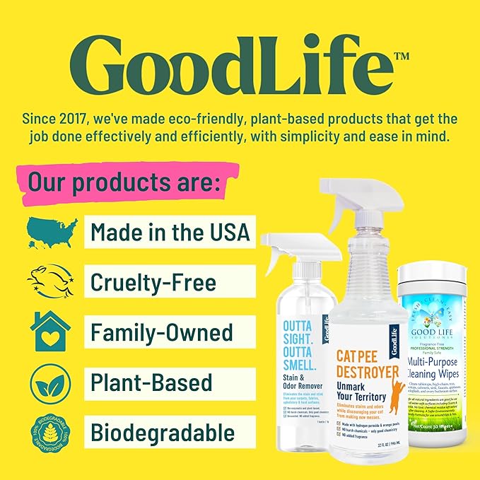 - THE EARTH-FRIENDLY CAT URINE DESTROYER YOU CAN TRUST. You'll get 16 fl. oz. of a powerful cat pee stain and odor remover that is litter-ly made in the USA by a woman-owned and veteran-owned small business. The formula is biodegradable and our packaging is fully recyclable - we take Planet Earth very seriously with our eco friendly cleaning products. We don't test on animals, either. (We think it’s clawful.)