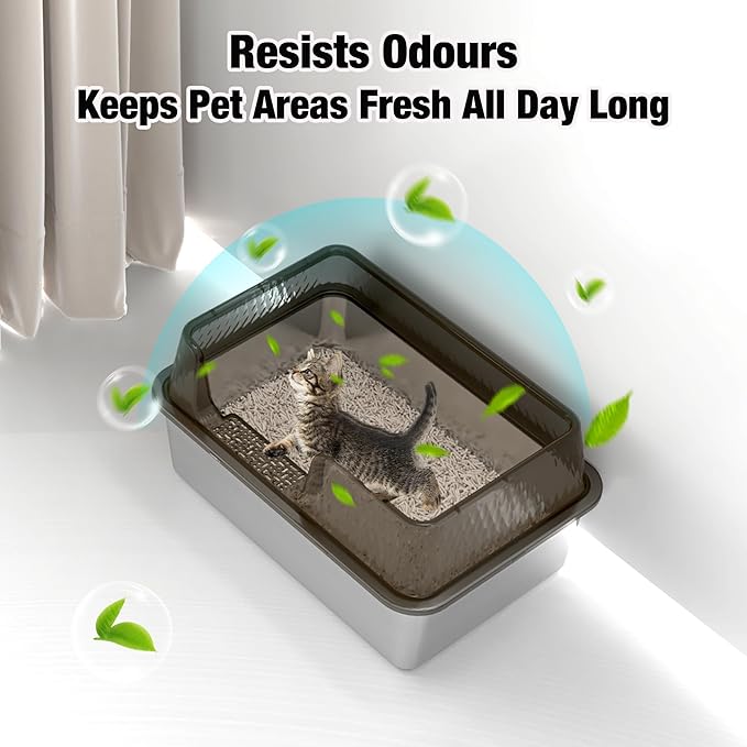 - Extra-Large Capacity: This stainless steel litter box with lid features an extra-large interior space, suitable for medium to large cats (19.6L'' × 13.77W'' × 9.84H”), ensuring they have enough to move and can use it for long periods without frequent litter change.