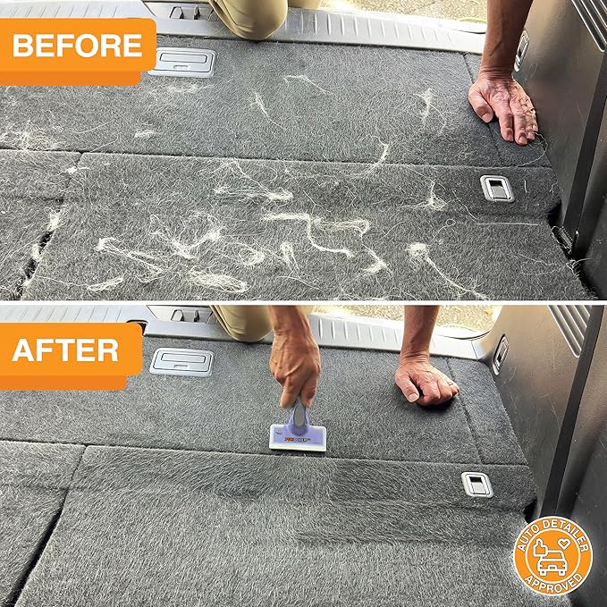 - 6 TOOLS IN 1 & MADE IN THE USA - The FurDozer has 3 different squeegee blades, 2 textured pads, and 1 crevice tool. Having all these different edges makes the FurDozer your all-in-one pet hair removal tool and auto detailing tool. The FurDozer is designed and MADE IN THE USA! *Not for use on pets.*