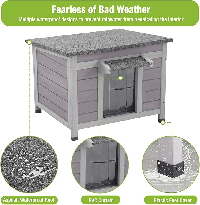 - 【Friendly Design】: The elevated floor and three vents holes provide proper airflow. Door flaps protects against wind, rain, and cold