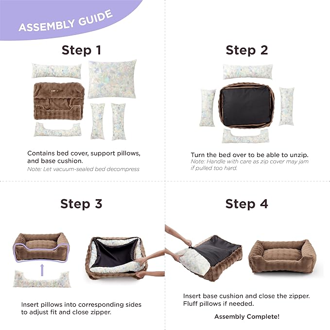 Lesure Fluffy Dog Beds for Medium Dogs - Rectangle Orthopedic Calming Pet Sofa,Plush Bubble Bolster Pet Bed with Removable Washable Cover and Nonskid Bottom,30x24x8inches,Brown
