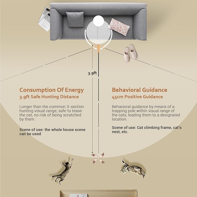 - Cat Fishing Pole Toys with Innovative 4-Section Design: The cat fishing pole extends to an impressive 53.15in, giving the kitty ample space to run and jump with glee. After playtime, the toys conveniently retract to 16in for easy storage.