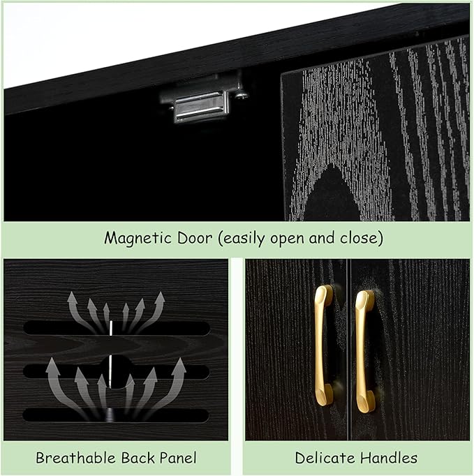 - Cat-friendly: The breathable design of the back board allows air to circulate and maintain good ventilation. And all board of this hidden litter box enclosure have passed the P2 test to safe for cats to use!