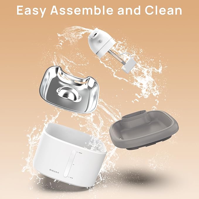 - 🐶🐾【Easy Assembly & Hassle-Free Cleaning】Features tool-free installation with clear instructions - set up your pet's fountain in minutes! The fully detachable design allows effortless disassembly: simply remove the water tank from base to access all components. Pump cleaning takes seconds - just rinse (avoid submerging the battery compartment). Note: For nozzle cleaning, use water rinse only.