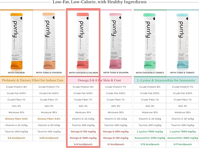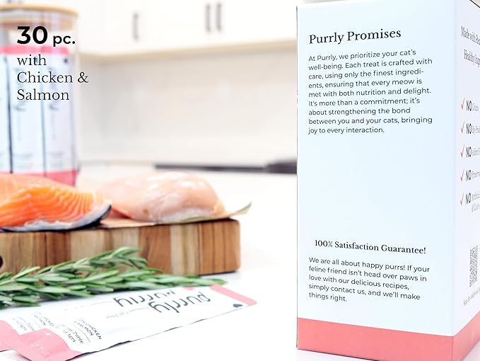 - HUMAN-GRADE PROTEIN SOURCES - Purrly uses only human-grade meat and fish as the primary protein source, exceeding industry standards and ensuring exceptional taste and unmatched nutritional value for your cat. These exquisite treats elevate snack time beyond ordinary treats, offering a truly gourmet experience that satisfies your feline's discerning palate. Each pouch serving unparalled quality and nutrition.