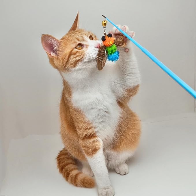 - Versatile Attachments: Compatible with most cat wand toys, allowing you to easily swap out refills and keep playtime exciting.It's a great cat hunting toys for both adult indoor cats and kittens.
