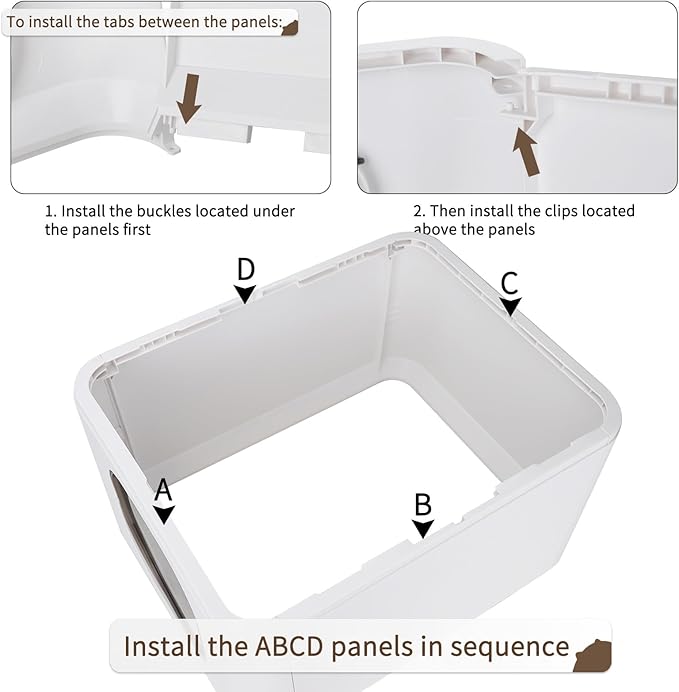 - Easy to Install&Clean: The bottom of the litter box has a drawer that you can just pull out to clean after your cat toilets in it. You can also pull the whole drawer out when cleaning without having to clean the entire litter box. The litter box is also very easy to install, just put each panel together in order and attach the drawer.