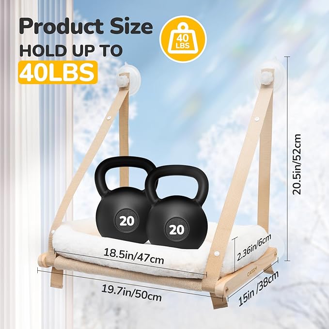 - 【Cat Hammock Size】The cat window bed overall size of our cat window perch is 19.7"L*15"W*20.5"H. Oversized cat hammock windows with sturdy and secure upgraded suction cups can accommodate multiple cats