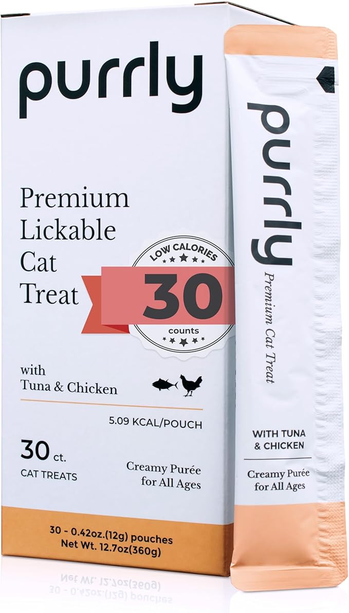 - INTERACTIVE & BONDING EXPERIENCE - Purrly's lickable puree encourages a unique and interactive way to treat and bond with your cat. You can offer the treat directly from pouch, your finger or a spoon, creating a moment of shared enjoyment and strengthening the connection between you and your feline friend. These treats can become an integral part of playtime, training sessions, or simply offering a small token of affection, fostering a deeper and more rewarding relationship with your cat.