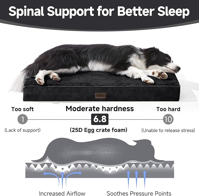 - Luxurious Comfort & Durability: Enjoy premium quality materials – plush corduroy surface with a 2-3 mm hair length, bonded with TPU for water resistance, and 25D Egg Crate Foam. Rest assured, our beds pass rigorous CP65 testing, ensuring safety and comfort for your pet.