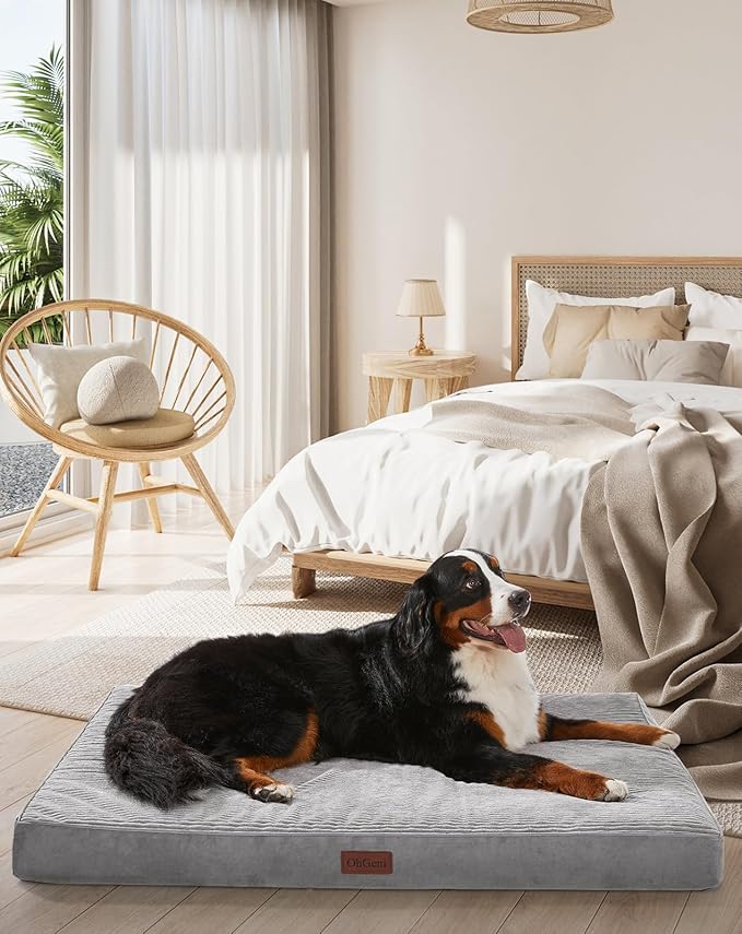 OhGeni Orthopedic Waterproof & Machine Washable Dog Bed for Extra Large Pets, Wider & Larger Size, Cat Mat with 25D Egg Crate Foam, Removable Cover & Invisible Zipper, 54 Inches(Gray)