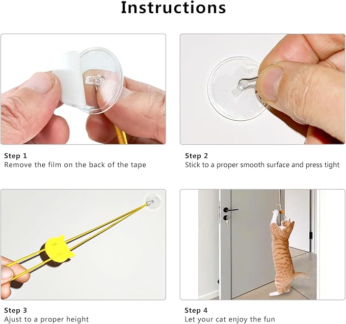 - 【Durable and Flexible Hanging System】 Includes 2 elastic hanging ropes with strong suction cups, ensuring a secure attachment to smooth surfaces like glass, doors, or wardrobes. The elasticity provides an interactive bouncing effect to keep cats engaged.
