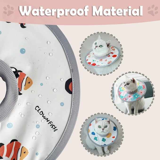 - 【PROTECTION FOR YOUR PETS】The cute pet recovery collar can prevent your pets from biting and licking the wound after surgical operation or injury. If your cat's wound is on the foot (like front and back paws), it is recommended to buy a larger size when cat's neck circumference allows.