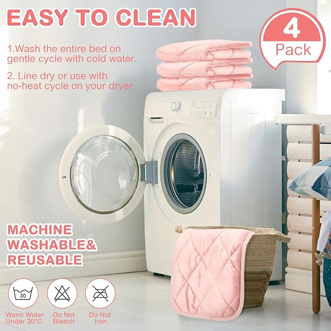 4 Pack Self Heating Cat Pad Self Warming Dog Mat Reflects Body Heat Extra Warm Thermal Pet Pad Washable Dog Cat Bed Crate Bed Mat Blanket (Pink,16 x 20 Inch)