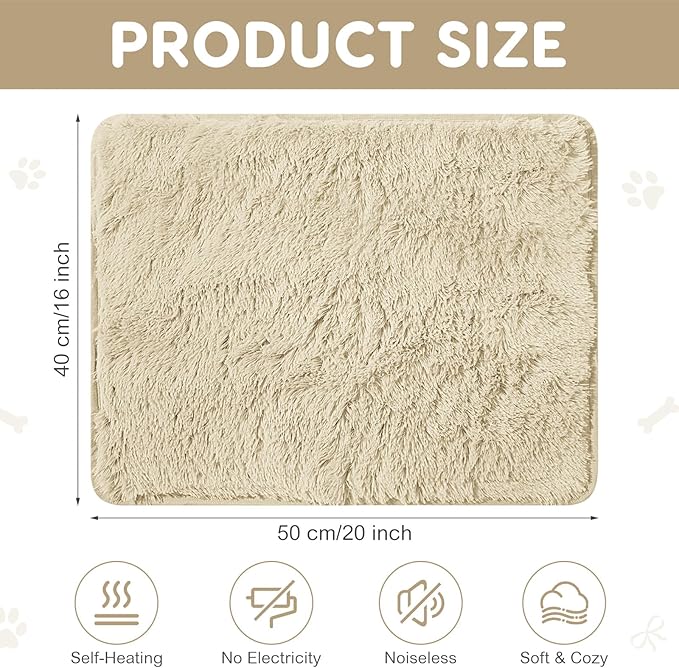 4 Pack Self Warming Cat Bed Pad Self Heating Dog Mat with Fluffy Faux Fur Plush Cat Calming Bed Thermal Mat Washable Pet Pad Anti Slip Bottom for Outdoor Indoor Pets(Camel,16" X 20")