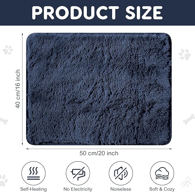 4 Pack Self Warming Cat Bed Pad Self Heating Dog Mat with Fluffy Faux Fur Plush Cat Calming Bed Thermal Mat Washable Pet Pad Anti Slip Bottom for Outdoor Indoor Pets(Navy,16" X 20")