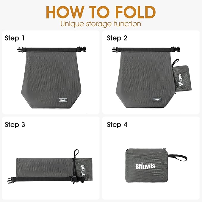 - SECURE ROLL-TOP CLOSURE - The innovative roll-top design allows you to securely close the bag by rolling it down and buckling it in place, providing a tight seal that keeps the contents protected. The strong buckle and attached D-ring offer added convenience, allowing you to clip on accessories such as leashes, keys, or tags, ensuring everything you need is within easy reach