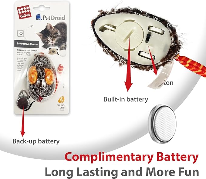 - 【Squeaky Mouse Sound】The cat toys for bored indoor adult cats make a realistic mouse sound chip when the interactive cat toys move, stimulating your cat's hunting instincts to chase and providing an interactive and engaging play experience.