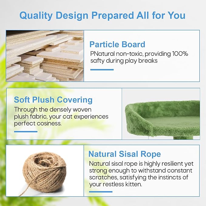 - 🐱 【Simple assembly】We understand that convenience is important to pet owners, which is why we made our cat tree simple to assemble in a matter of minutes. You can quickly provide your kitties a stimulating environment by following the simple setup instructions and using the available tools. Please feel free to contact us with any questions you may have about our cat tree, and we will respond to you within a day!