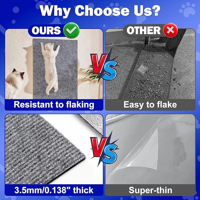 - 【Scratch-Resistant & No-shred】Made from 0.14-inch thick premium felt, this anti scratch furniture protector is tough. The cat scratchers for indoor offers a realistic carpet texture that caters to your cat’s scratching needs without the shred associated with cat scratcher ardboard