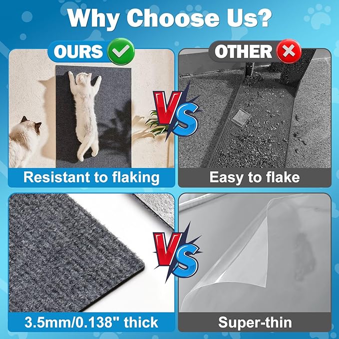 - 【Scratch-Resistant & No-shred】Made from 0.14-inch thick premium felt, this anti scratch furniture protector is tough. The cat scratchers for indoor offers a realistic carpet texture that caters to your cat’s scratching needs without the shred associated with cat scratcher ardboard