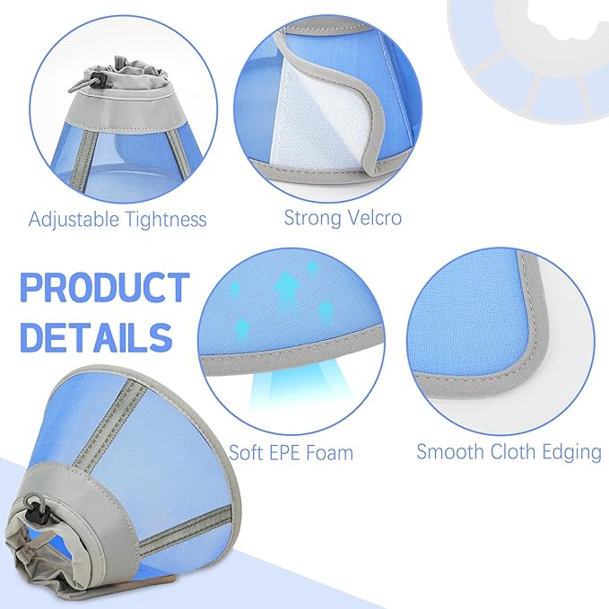 - Soft and Breathable Mesh - Say goodbye to the discomfort of rigid plastic collars! Our cat neck cone is crafted from a soft, breathable mesh material that offers cushioning when squeezed or bumped. The dense mesh ensures excellent ventilation, keeping your cat comfortable throughout the day. This lightweight design is so unobtrusive that your pet may even forget they're wearing it, allowing them to eat and sleep normally.