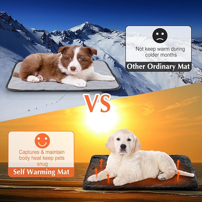 - Self Warming: the self heating cat pads are designed with a heat reflecting liner, capture pet's body heat and radiate it back, effectively helping pets stay warm without electricity, creating a warm sleep surface for pets, keeping your pets toasty warm in cold days; No need to worry about safety hazard or unpleasant smell caused by using an electric pad; Suitable for both indoor and outdoor pets to nap the day away