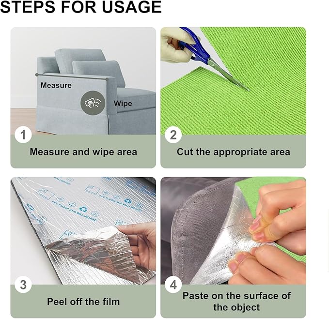 - [Easy to Use and Maintain]: Wipe and measure the pasting area first, (please do not use alcohol to wipe the surface, otherwise the product will lose its stickiness.) Cut out the required size, and then paste. Self-adhesive backing sticks easily to furniture. It is not easy to fall off even if it is scratched violently. Simply wipe or vacuum the cat hair off the mat when cleaning.