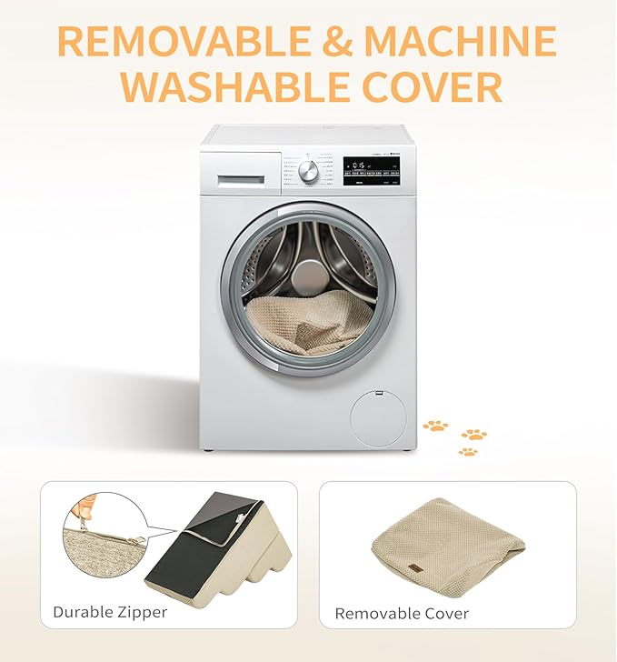 - Easy to Clean & Maintain: The removable fleece cover is machine washable for easy cleaning—just remove the foam core and toss the cover in the wash. Note: After unpacking, allow the foam to fully expand for 24-48 hours to ensure maximum comfort and stability. For long-lasting use, wipe the foam core clean. This simple care keeps your pet's stairs fresh and comfy for your furry friend!