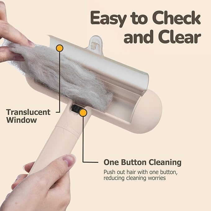- QUICK MAINTENANCE: Large capacity compartment with easy-press release button for simple disposal of collected pet hair