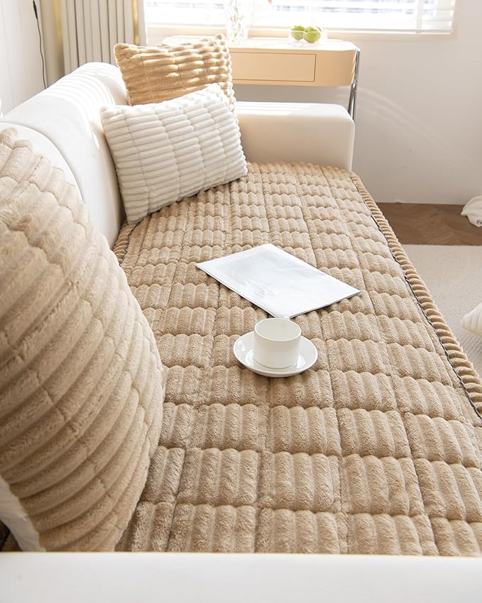 - Stays in Place: The soft faux fur Sofa Slipcover has an non-slip backing silicone rubber design; Stay in place firmly better than other normal ones which use straps. Please note, minor adjustments will be needed with rowdy dogs and kids.