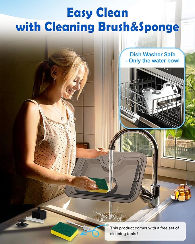 - Easy to Clean: The whole machine is made of stainless steel, and the upper water bowl can be put directly into the dishwasher for cleaning. The pump and filter of this product are removable, easy for daily cleaning and maintenance and replacement. This product also comes with a free sponge and brush, easy to clean the water dispenser and water pump. Both the water pump and filter element can be purchased additionally for replacement, if there is any product problem or use problem, please contact us!