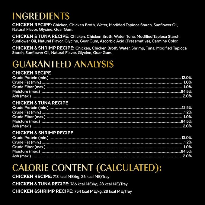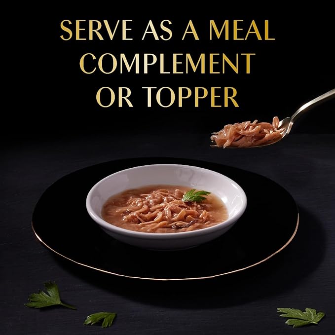 - Gourmet Experience: Your cat will enjoy tender pieces of Chicken and whole shrimp served in a delicate broth over their cat food or as a stand-alone snack