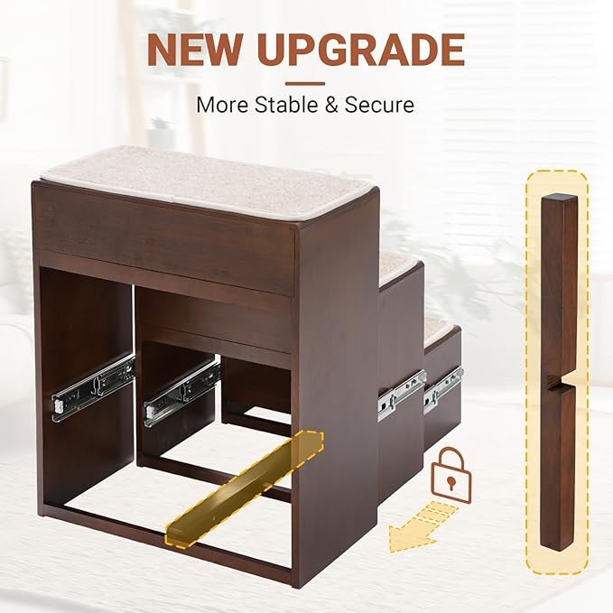 - Multifuctional Cat Steps: Designed as furniture style pet steps, it doubles as a side table or nightstand, blending seamlessly with home decor while serving your pets to reach high beds.