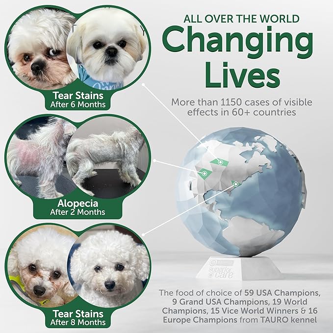 - Prevents Tear Stains & Yellowing Fur: Our healthy dog food helps maintain a clear tear and saliva composition, preventing brown stains around the eyes, mouth & paws; reduces the need for frequent cleaning, helps prevent skin irritation and odor