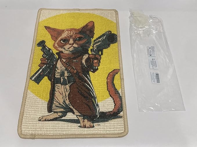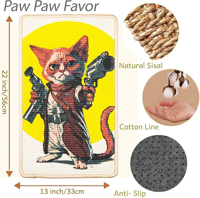 SOLDAY Sisal Cat Scratcher Mat 22x13 inch for Floor Wall Carpet Couch Furniture, Cat Scratching Posts Board with Velcro Tape, Anti Scratch Furniture Protector(Pistol Cat)