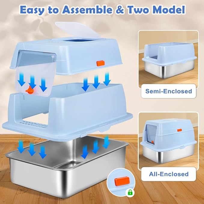- EASY-TO-CLEAN DESIGN - The smooth stainless steel surface makes it simple to rinse and wipe down. Its modular one-second disassembly allows you to lift the metal litter pan quickly for cleaning, without having to move other parts. Easy to take care of cleaning and create a clean and fresh toilet environment for your cat