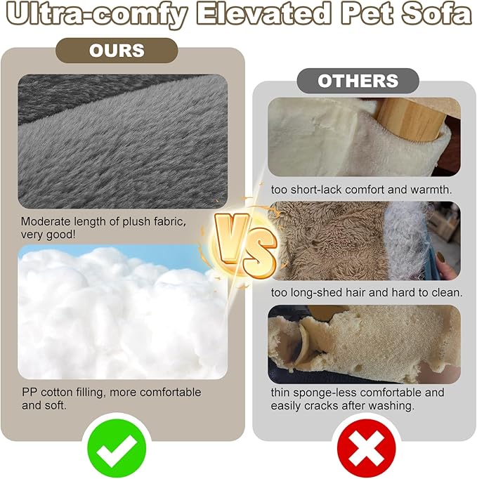 - Integrated Stitched Elevated Cat Couch Cover: No frustrating Ve-l-cro here! Unlike flimsy fasteners that wear out, trap lint, or lose stickiness, our seamless design keeps your cat furniture looking neat and staying durable. Perfect as a cat sofa or dog couch for your furry friend, it’s ideal for indoor cats and small pups who deserve a cozy spot. Whether you need a kitten bed or a small dog bed, this piece works beautifully in any room