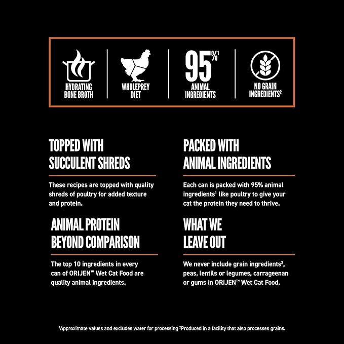 ORIJEN Chunks & Shreds Wet Cat FoodChicken and Tuna Kitten Entrée 5.5oz Cans (6 Count)