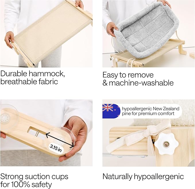 - Sturdy Wooden Frame – Holds Up to 44 lbs – Premium cat window shelf supports large cats or multiple pets without wobbling. An ideal elevated cat couch bed and indoor hammock.